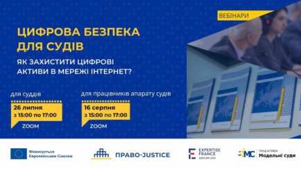 26 липня 2023 року відбудеться вебінар з цифрової безпеки для судів, які організовує Проєкт ЄС "Право-Justice" у межах Ініціативи "Модельні Суди".