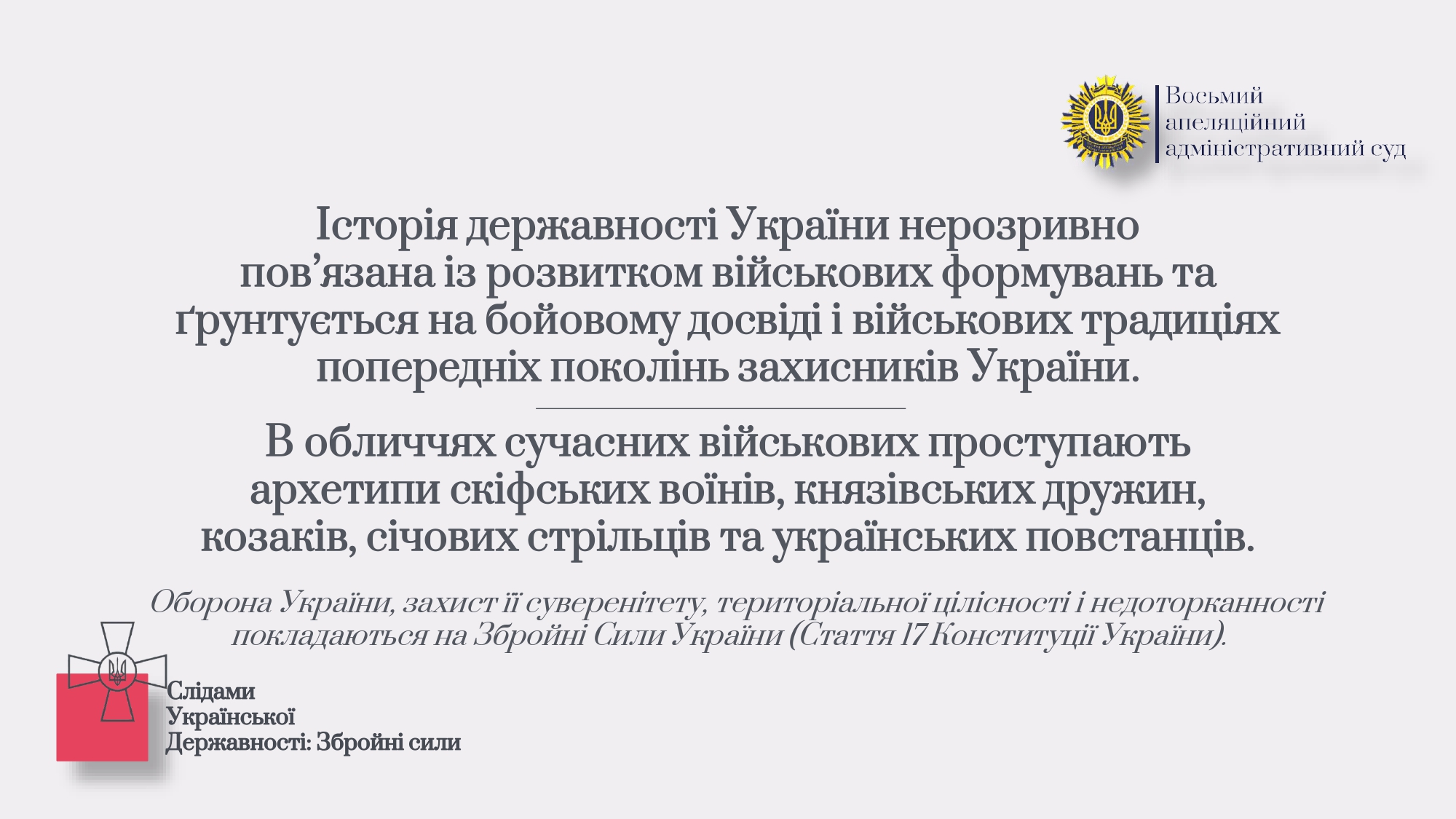 З цієї нагоди Восьмий ААС виокремив добірку атрибутів становлення української державності, серед яких мова, територія, збройні сили, грошова одиниця, прапор, гімн та герб.
