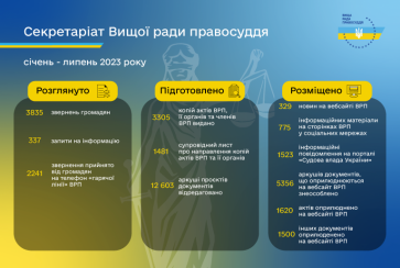 Діяльність секретаріату ВРП у цифрах у січні – липні 2023 року
