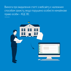 Вимога про видалення статті з вебсайту є належним способом захисту, якщо порушено особисте немайнове право особи – КЦС ВС