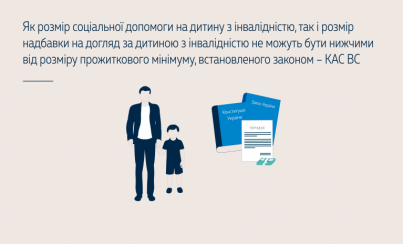 Такого висновку дійшов Касаційний адміністративний суд у складі Верховного Суду у справі щодо перерахунку та виплати державної соціальної допомоги як дитині з інвалідністю до 18 років і надбавки на догляд за дитиною з інвалідністю до 18 років у розмірах, які не нижчі від прожиткового мінімуму, встановленого законом.