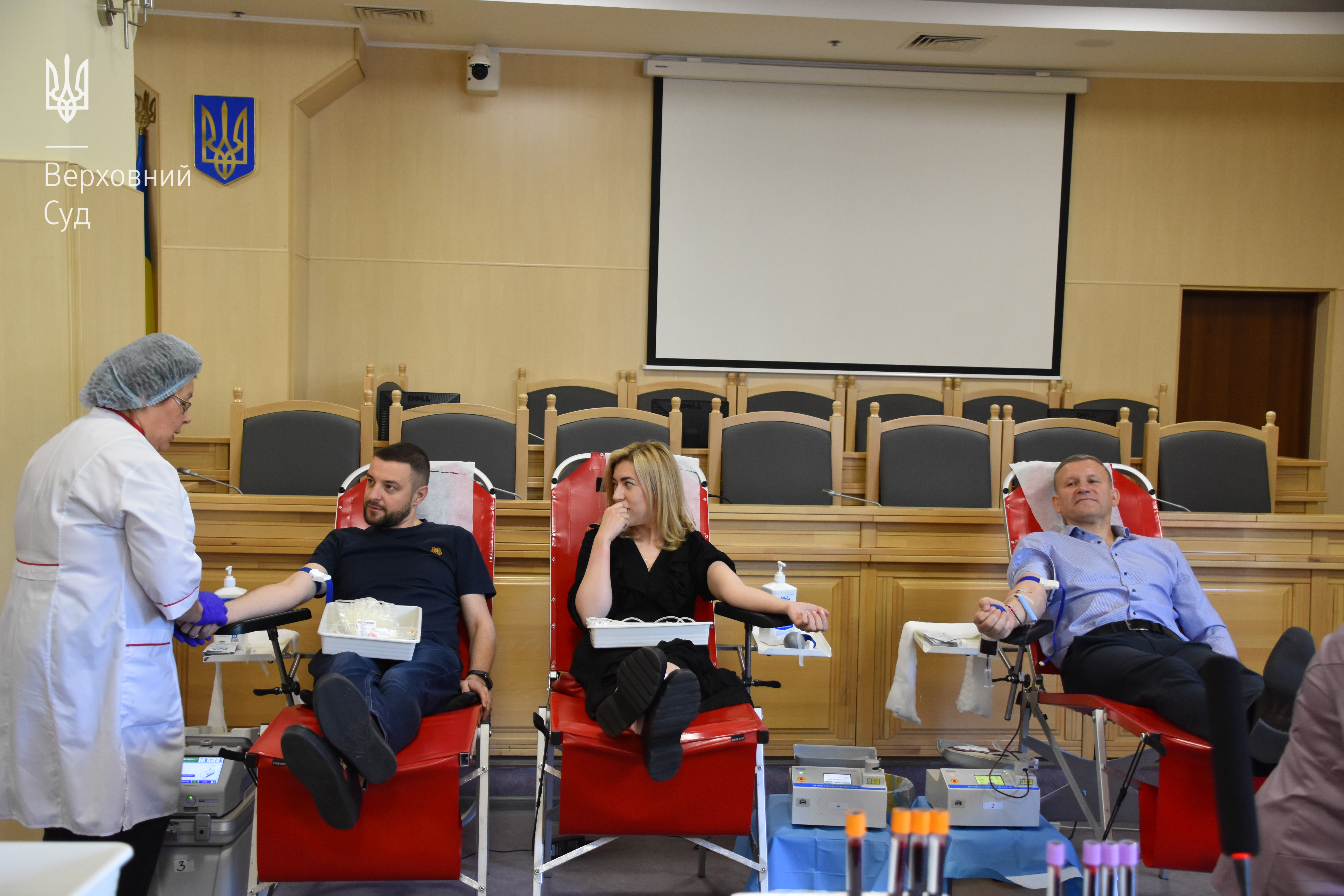 Цього разу забір крові в кожному з касаційних судів забезпечили виїзні бригади Київського міського центру крові та Національного інституту серцево-судинної хірургії імені М. М. Амосова. Загалом під час акції донорами крові стали 133 судді та працівники Апарату ВС, які здали майже 60 літрів крові.
