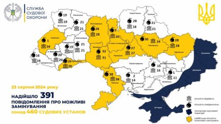 Служба судової охорони інформує, що 23 серпня 2024 року, з 09 години ранку, почали надходити повідомлення про замінування будівель судів, органів та установ системи правосуддя по всій Україні.
