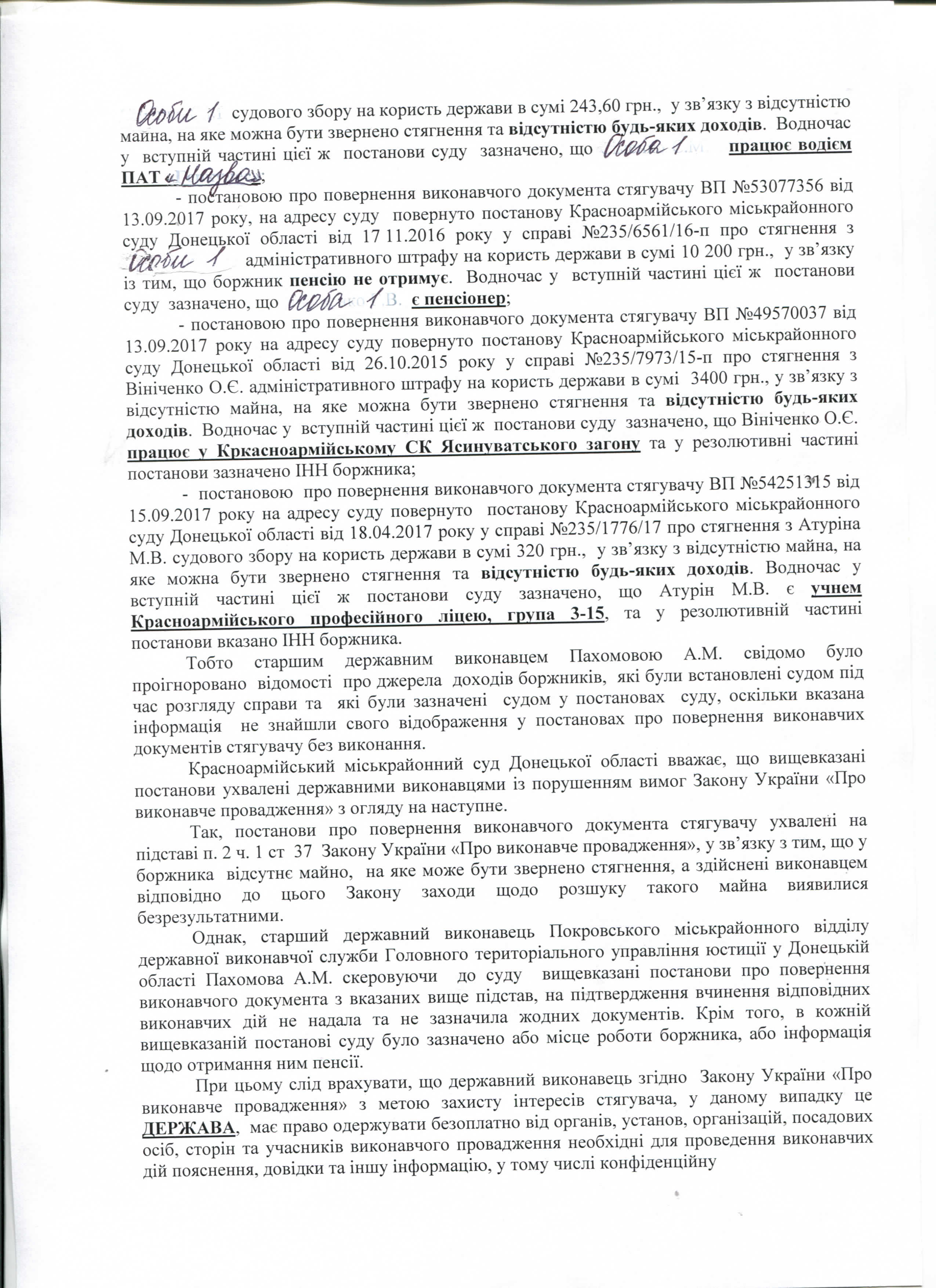 Внаслідок не виконання Покровським ВДВС постанов суду в частині стягнення судового збору та штрафів, бюджет України втратив кошти у розмірі 325 628,00 грн.
