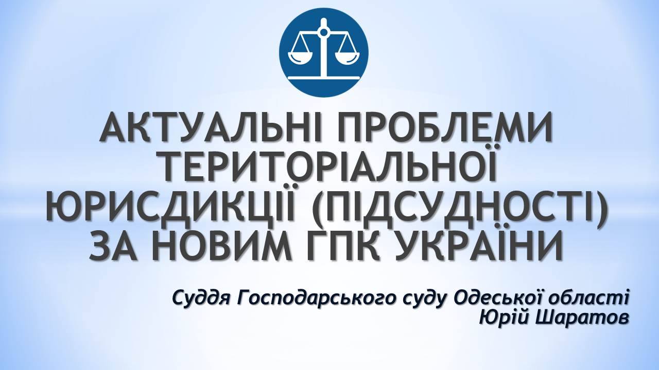 Презентація відповідно до тез доповіді щодо актуальних проблем територіальної юрисдикції (підсудності) за новим ГПК України судді Господарського суду Одеської області Юрія Шаратова.