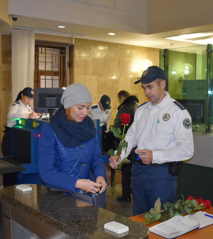 Традиційно співробітники Служби судової охорони подарували квіти всім присутнім у цих судових установах жінкам.