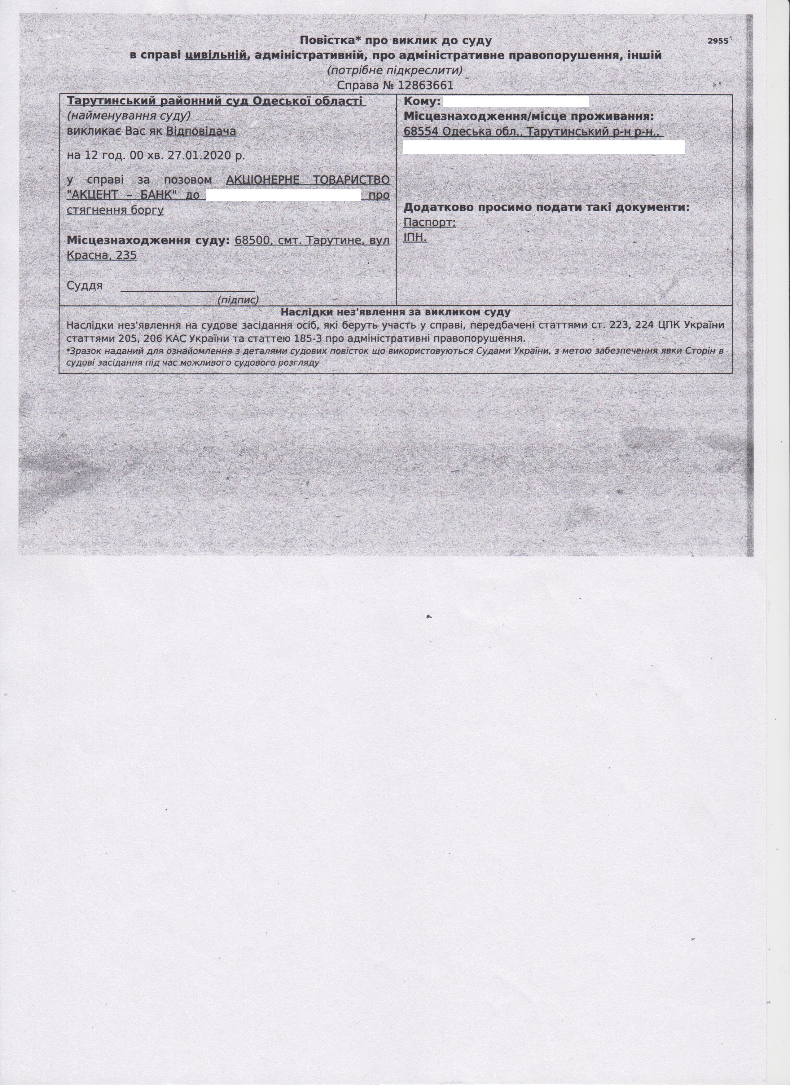 Як виявилося, такі документи надсилаються окремими колекторськими фірмами з вказівкою на те, що судову повістку можливо анулювати, сплативши визначену суму на рахунок кредитора.