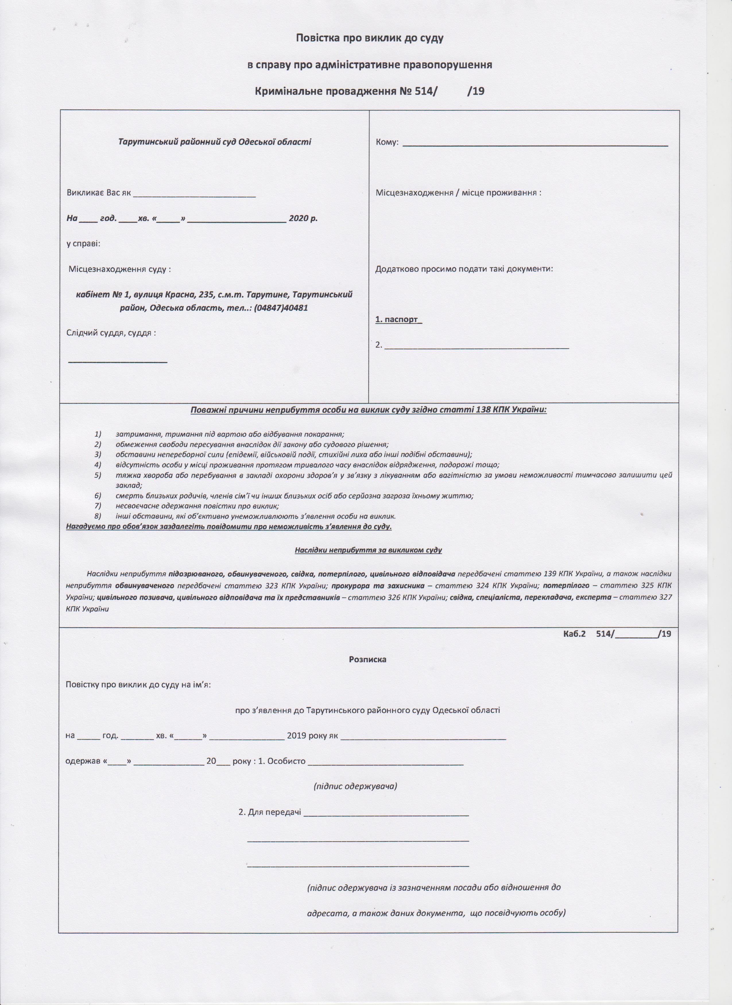 Про фальшиві судові повістки застерігає Тарутинський районний суд Одеської області